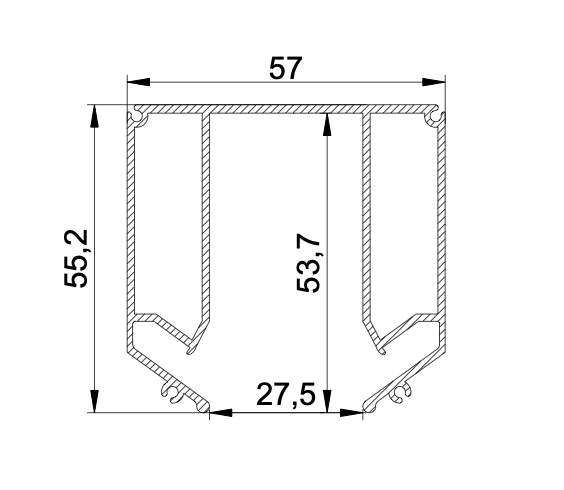 | Размеры (ДхШхВ), мм | 2000x57x55.2 |