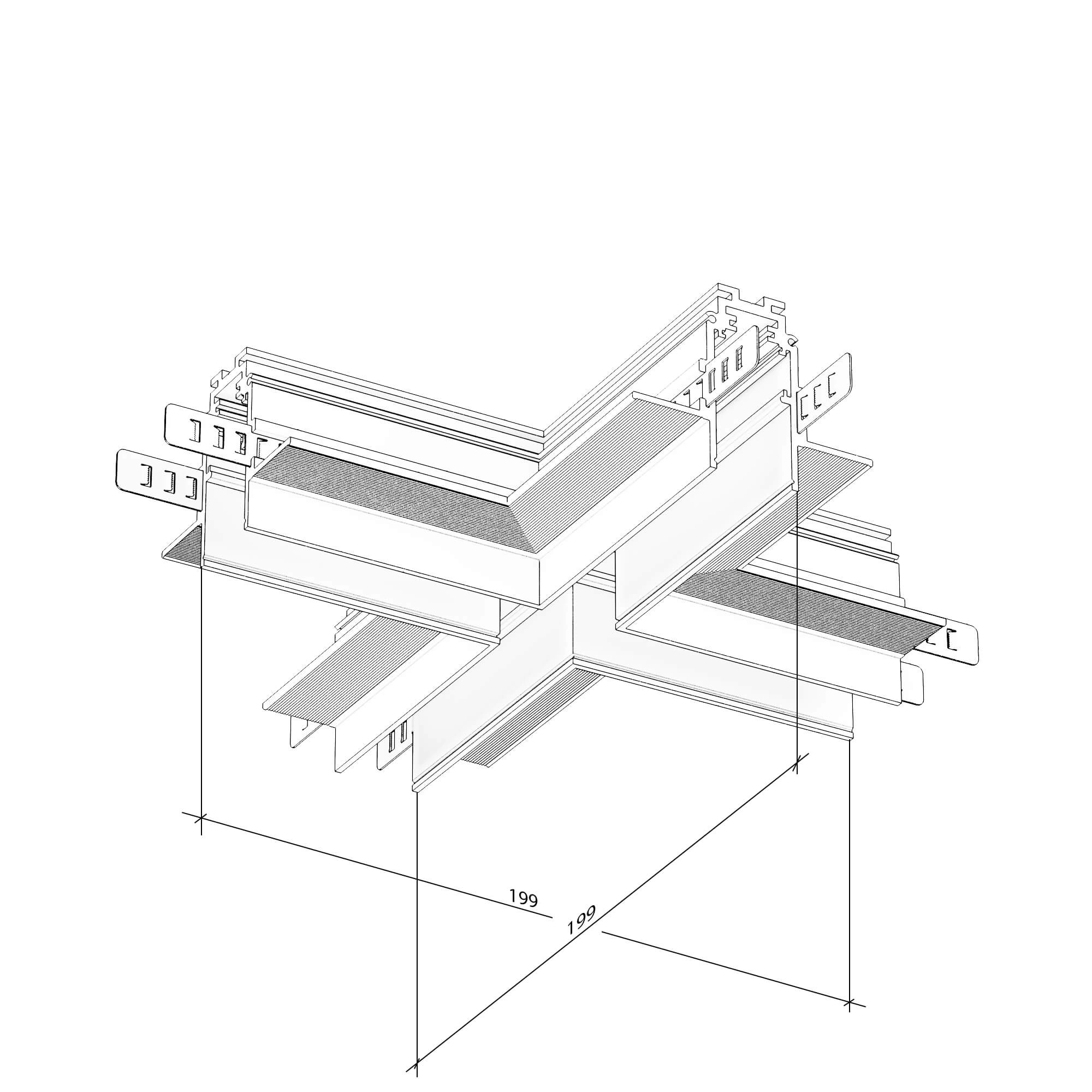 • Соеденитель Х-обр. встраиваемый под шпаклевку Byled серия Gravity 48v
