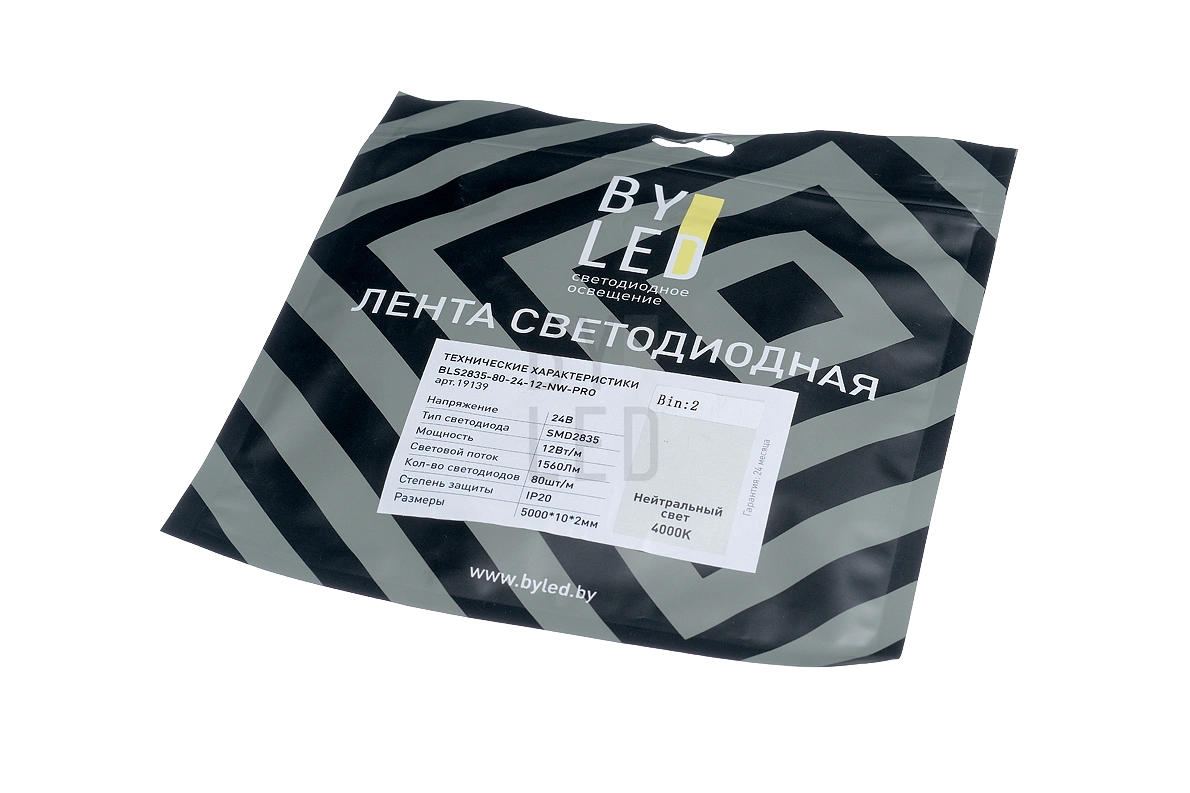 Лента светодиодная Byled PRO 2835, 80 LED/м, 12 Вт/м, 24В , IP20, Цвет: Нейтральный белый