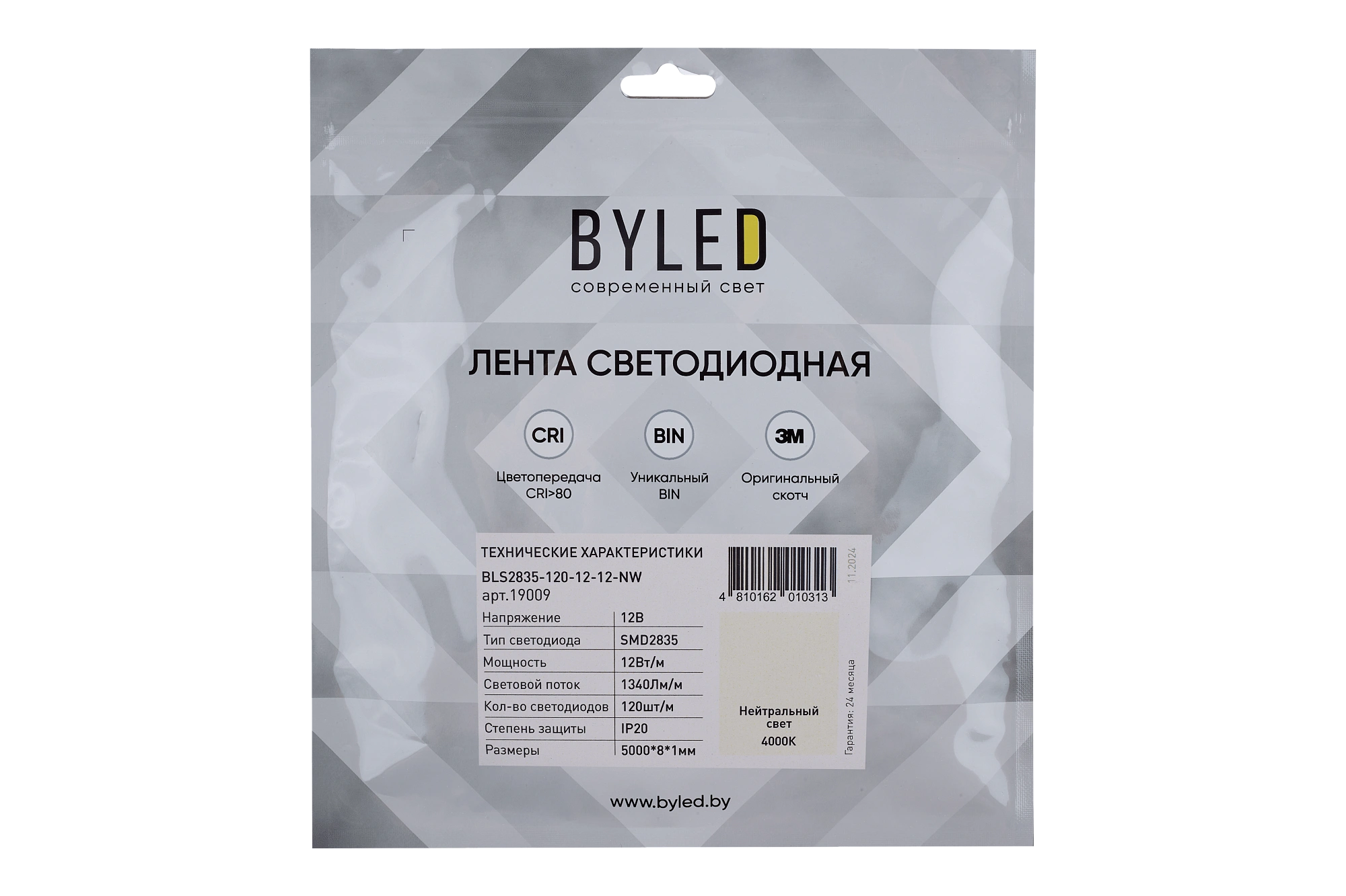 Лента светодиодная Byled Standart 2835, 120 LED/m, 12W/m, 12V , IP20, 24мес., Цвет: Нейтральный белый