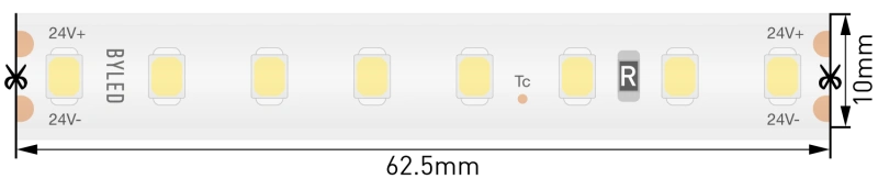 Светодиодная лента Byled LUX SMD2835, 128 LED/m, 9.6W/m, 24V , IP66, Цвет: Теплый белый