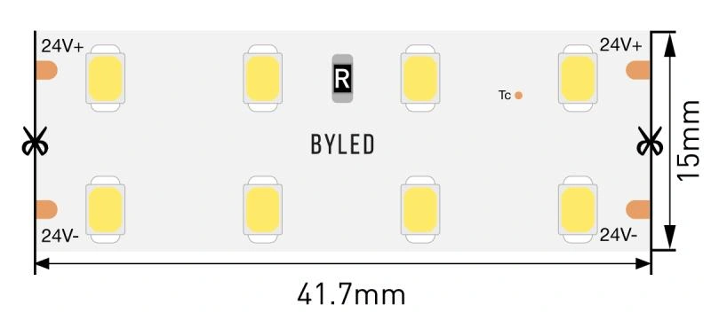 Светодиодная лента Byled LUX SMD2835, 192 LED/m, 20.8W/m, 24V , IP20, Цвет: Теплый белый