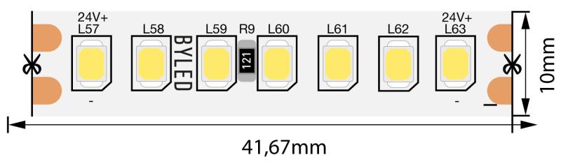 Лента светодиодная Byled PRO 2835, 168 LED/м, 17 Вт/м, 24В , IP20, Цвет: Теплый белый